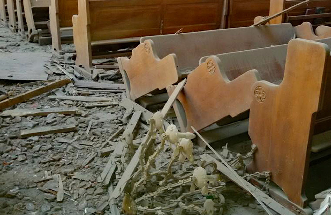 Die stark beschädigte evangelisch-armenische Emmanuelkirche in Aleppo 2015/16 - Foto: GAW
