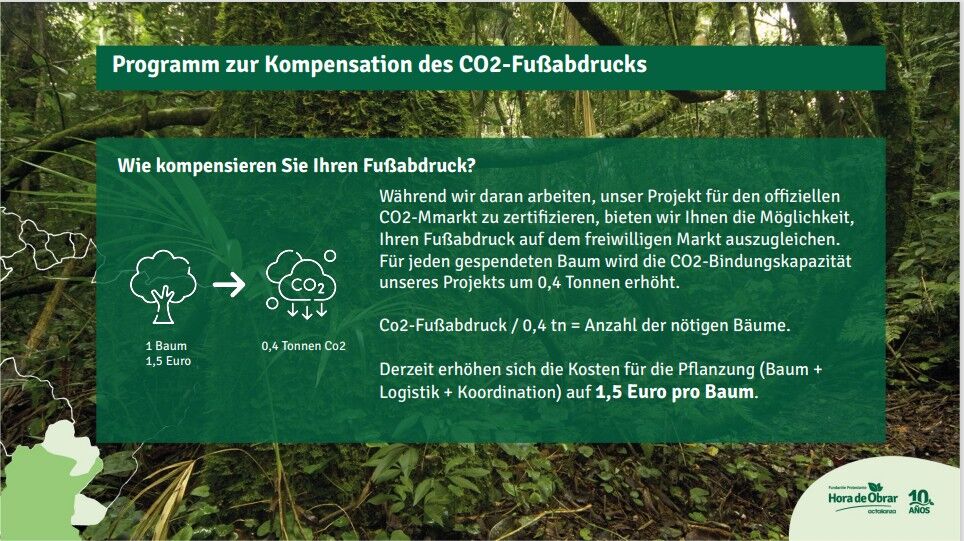 Mit lokalen Bauernfamilien und indigenen Gemeinschaften wurden mehr als 370.000 einheimische Bäume gepflanzt, die über 148.000 Tonnen Kohlendioxid ausgleichen. Diese Maßnahmen verbessern die Lebensgrundlagen und die Fähigkeit der Gemeinden, sich an ungünstige Wetterbedingungen wie Dürren, Unwetter und schwere Stürme anzupassen.