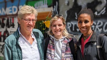 Im Bild: Annette Muhr-Nelson (links) mit Eleana Doupha (Mitte), der ersten Diakonin in der Ev.-griechischen Kirche, und Touria Besbas.