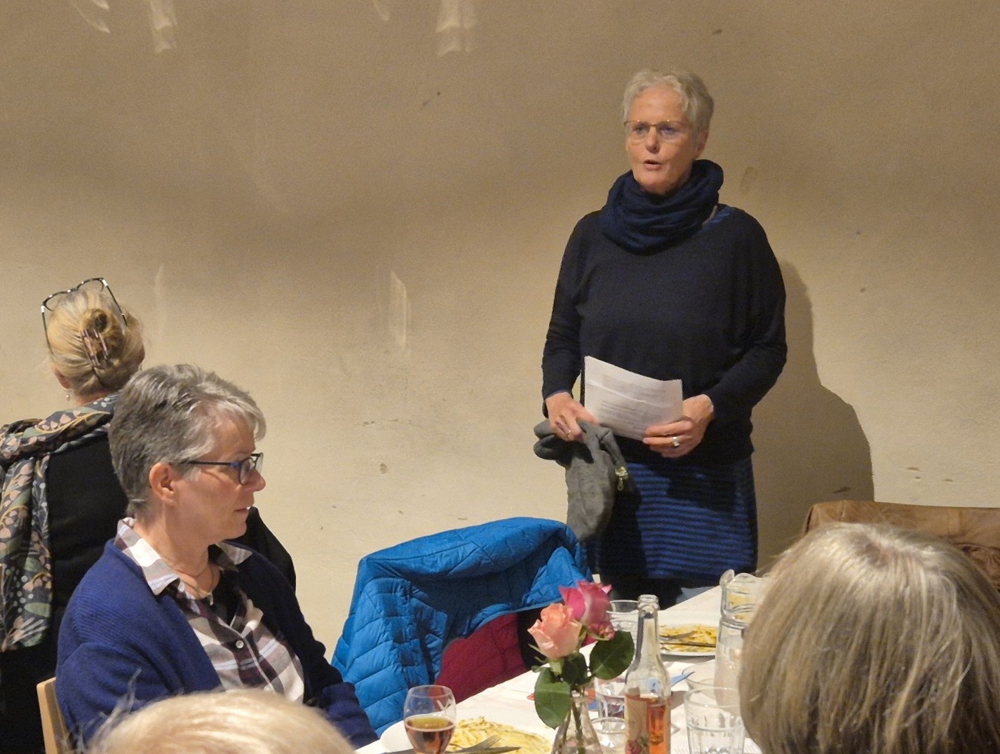 Bilder 6 und 7: Für Gesprächsstoff sorgte auch der Bericht der Bielefelder Diplom-Sozialpädagogin Ines Eckmann-Weduwen von ihren Erfahrungen im Nähprojekt NAOMI bei Thessaloniki und der Casa Base, die geflüchteten Frauen eines Containerdorfs einen geschützten, wohltuenden Raum bietet. Die Frauenarbeit des Gustav -Adolf-Werks unterstützt beides mit seinem Jahresprojekt Griechenland.