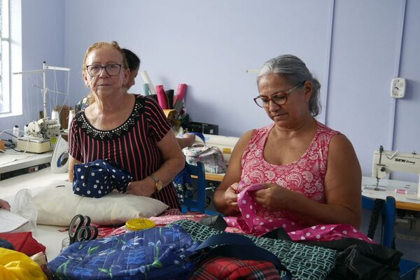 Der Stadtteil Santo Afonso ist ein Armenviertel. In der Nähstube des Sozialzentrums Ação Encontro bekommen Frauen aus dem Viertel die Chance, sich ein Handwerk anzueignen, mit dem sie etwas eigenes Geld verdienen können. Das Besondere: Sie lernen Upcycling – die kreative Wiederverwertung von alten Materialien. Aus Stoffresten und alten Regenschirmen nähen sie beispielweise Taschen. Außerdem erfahren sie mehr über ihre Rechte und lernen Grundlagen im Unternehmertum.