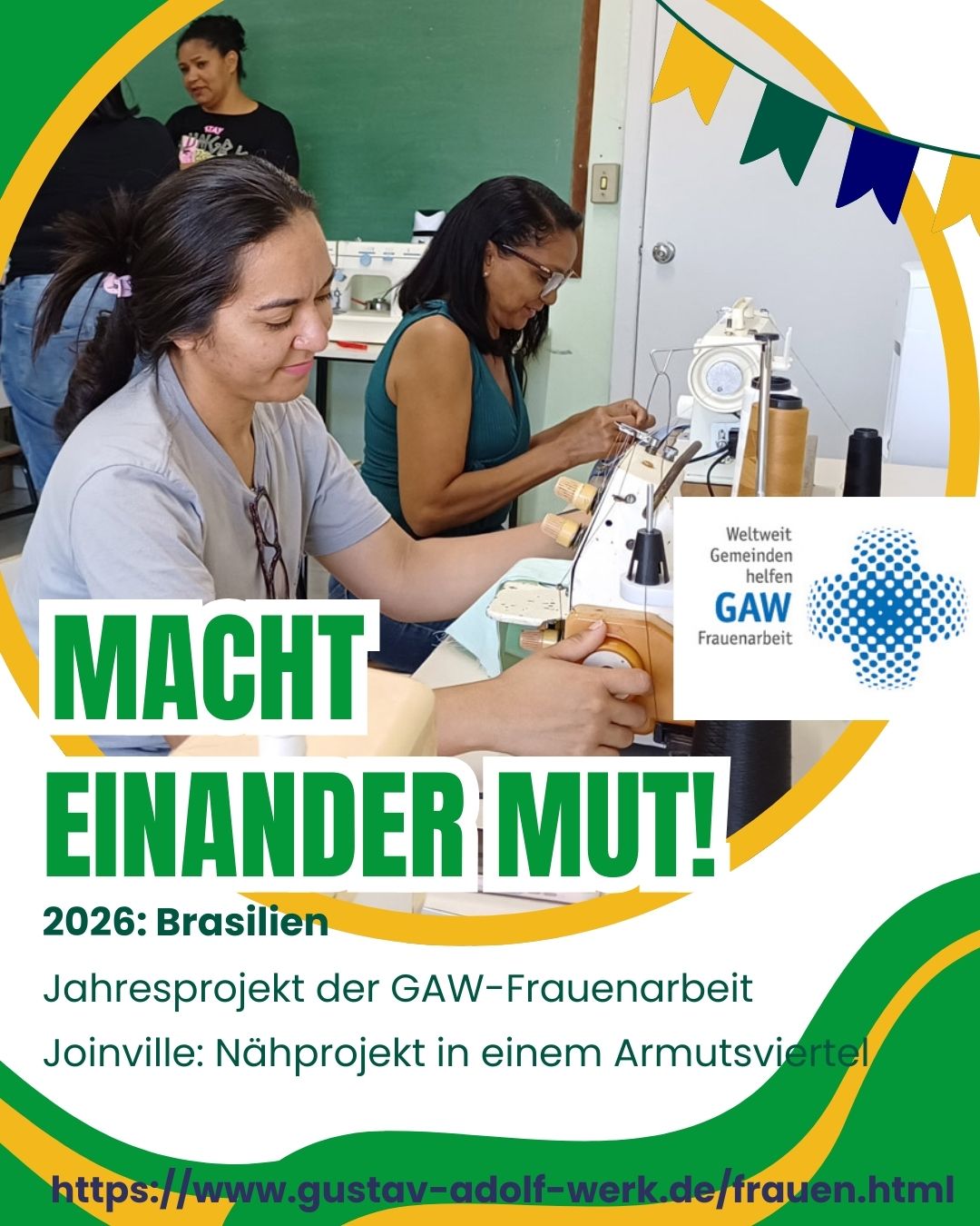 In der Stadt Joinville im Bundesstaat Santa Catarina gibt es in den Favelas Jardim Paraiso und Morro do Meio zwei Sozialprojekte für Kinder und Jugendliche. Auch deren Familien werden einbezogen und gestärkt. Besonders wichtig ist der neue Nähkurs für Mütter, in dem Frauen handwerkliche Fähigkeiten, wirtschaftliche Selbstständigkeit und Selbstvertrauen lernen. Für den Kurs sollen Nähmaschinen, sonstiger Werkstattbedarf und Stoffe besorgt werden.