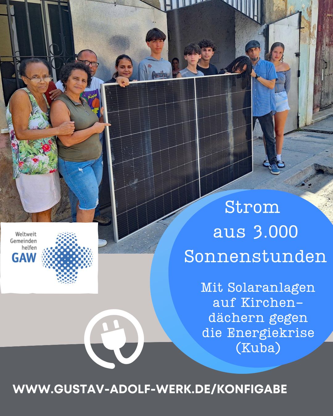 Eine Lösung wäre Solarstrom. Die Sonne scheint in Kuba rund 3 000 Stunden im Jahr. Mit dem Projekt „Strom aus 3 000 Sonnenstunden“ möchten wir Solaranlagen auf Kirchendächern in Kuba installieren. Das bedeutet: Gottesdienste, Jugendarbeit und soziale Hilfsangebote können stattfinden!