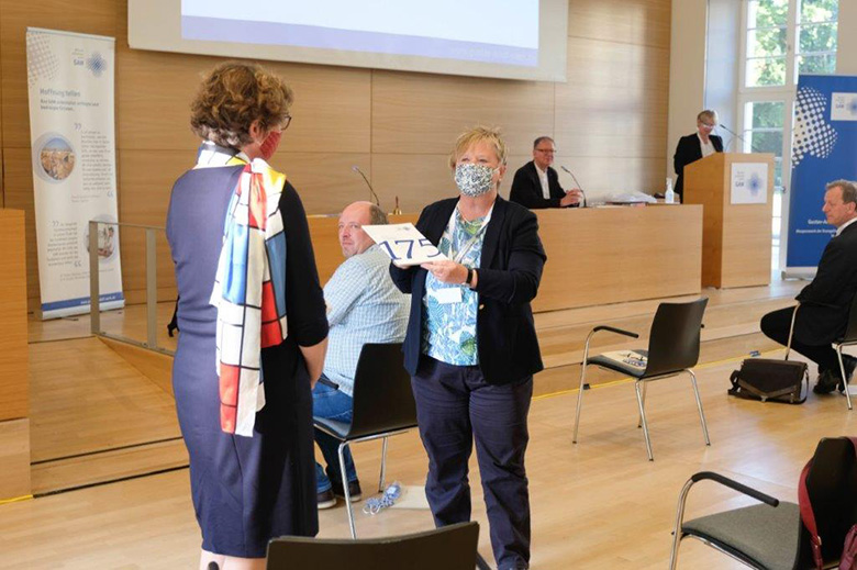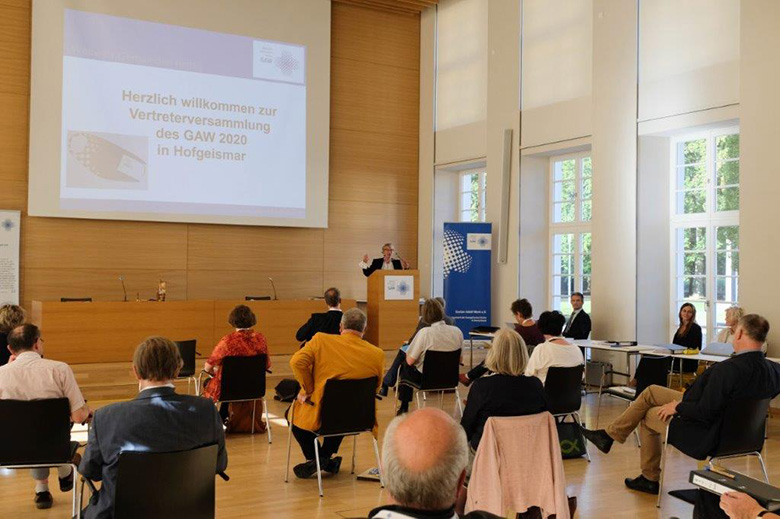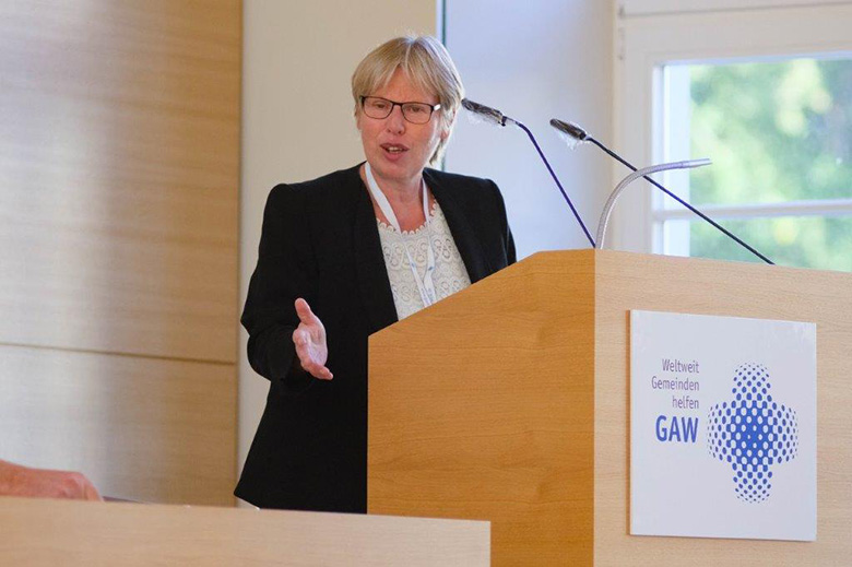 Am 20. und 21. 9. fand als Präsenzveranstaltung die Vertreterversammlung statt. Wegen Anti-Corona-Maßnahmen musste das Programm verkürzt und ohne Gäste aus den Partnerkirchen durchgeführt werden. Eröffnet wurde die Vertreterversammlung (VV) durch die Präsidentin des GAW Prälatin Gabriele Wulz. Mit einer Eröffnungsandacht durch Bischöfin Dr. Beate Hofmann , Ev. Kirche von Kurhessen- Waldeck, wurden die Teilnehmenden begrüßt. In das Zentrum ihrer Andacht stellte Bischöfin Dr. Hofmann den Wochenspruch „Alle eure Sorge werft auf ihn, denn er sorgt für euch." Ausdrücklich verweise der Text aus dem 1. Petrusbrief auf die weltweite Gemeinschaft von Brüdern und Schwestern. Das GAW sei ein wichtiger Teil dieser Gemeinschaft, weil es seit fast 200 Jahren sichtbar mache, wie Christinnen und Christen weltweit in Verbindung bleiben und sich gegenseitig stützen würden. Mit Sorgenetz könne man dies beschreiben. „Das GAW als Sorgenetz lebt ja davon, dass hier nicht anonym Gelder fließen, sondern dass man sich kennt, voneinander weiß, sich umeinander sorgt und füreinander betet. Und dass das eben keine Einbahnstraße ist, sondern ein Geben und Nehmen." (Zitat Bischöfin Dr. Beate Hofmann) In Zeiten von Corona habe Sorgenetz plötzlich einen neuen Klang bekommen. Die Projekte des GAW seien plötzlich Hotspots dieser Welt: Libanon, der politisch, ökonomisch und sozial am Boden liege, Ukraine, wo ein Krieg tobe, Kirgisien, wo Corona ethnische und religiöse Konflikte anheize. Es geb noch weit mehr Beispiele zu benennen. Im weltweiten Netz von Menschen, die sich aus ihrem christlichen Glauben heraus für andere einsetzen, sich umeinander kümmern und ein Netz bilden, sei die Arbeit des GAW ein wichtiger Knoten. So gesehen sei das GAW ein modernes Werk mit einem traditionellen Namen. Bischöfin Dr. Beate Hofmann deutete zum Abschluss ihrer Andacht die Abkürzung GAW auf diese Weise: