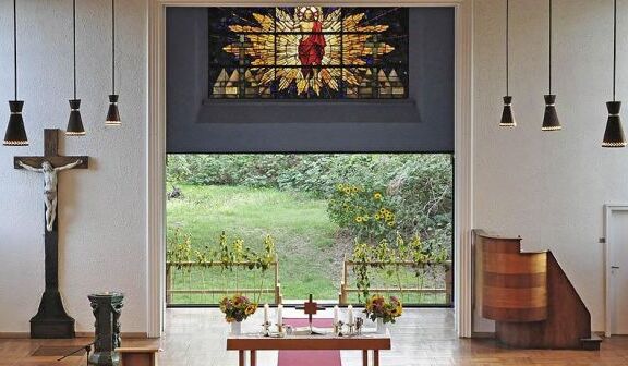 Mit dem Projektkatalog 2020 wurde ein Projekt in der Auferstehungskirche Dessau gefördert. Dort wurde die Altarwand so gestaltet, dass sie sich - wie in der ursprünglichen Konzeption vorgesehen - öffnen lässt , um den Außenbereich einzubeziehen.