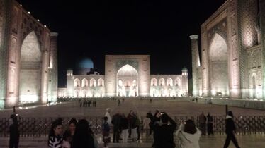 Registan heisst wörtlich übersetzt Sandplatz - das ausgetrocknete Flussbett, auf dem erst ein Basar und Karawansereien standen, und auf dem später Medesen und Moscheen gebaut wurden. Unser Reiseleiter Dilram nennt den Registan „die Visitenkarte Zentralasiens“. Tief beeindruckt von der Schönheit des Ensembles glauben wir ihm. Und ganz Samarkand macht auf uns einen grossen Eindruck.