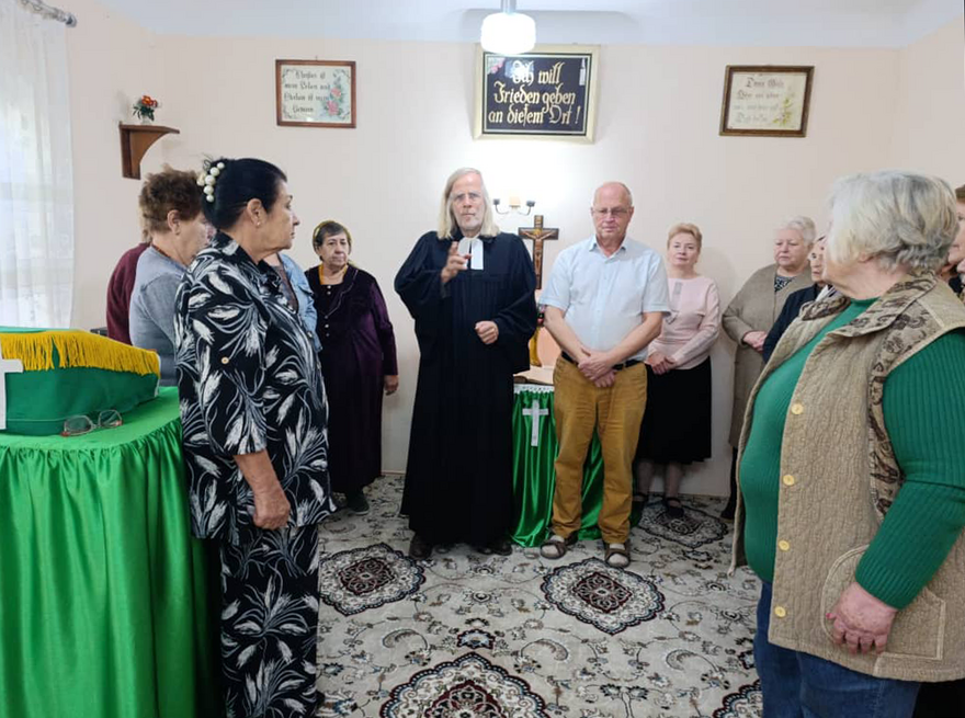 Im Anschluß dann das gemeinsame Teetrinken, das dazugehört, wenn Gäste angereist sind. Wir machen eine kleine Runde, jede soll etwas sagen. Und zu unserem Erstaunen heißt es durchgehend: Uns geht es gut. Ja, die Gemeinde ist sehr geschrumpft. Standen früher die Gottesdienstbesucher bis in den Garten, so sind es jetzt nur noch wenige, die sich regelmäßig versammeln. Und daß die allermeisten Kinder und Enkel nach Rußland gegangen seien, das schmerzt. Aber das Leben im Land selbst ist jetzt viel leichter als noch zu Beginn des Jahrtausends, auch wenn die Renten zum Teil äußerst niedrig sind und immer noch kaum für das Nötigste reichen. Von denen, die hier sind, will keine weg, hier ist ihre Heimat.