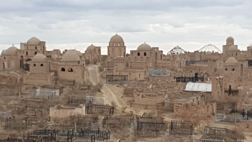 Mit dem Taxi geht es nach Mizdakhan, nahe an der Grenze zu Turkmenistan gelegen. Wir überqueren den Amu-Darja, früher einer der beiden mächtigen Ströme, die den Aral-See speisten. Von hier bis zur einstigen Mündung in den ehemaligen See sind es noch einmal 200 km. Mein Eindruck von der Brücke aus: Hier ist der Amu-Darja etwa doppelt so groß wie die Nidda beim Eintritt in den Main. Das ist natürlich viel zu wenig, um den Aral-See zu retten, es war zwischendurch aber noch schlimmer gewesen, die Wasserverschwendung bei der Bewässerung von Baumwollfeldern war noch hemmungsloser. So schön die Bemühungen Usbekistans (Amu-Darja) und Kasachstans (Syr-Darja) sind, mit dem Wasser besser hauszuhalten: Wenn sich seit dem Ende der Sowjetunion die Bevölkerung alleine Usbekistans von damals 20 auf jetzt 38 Millionen fast verdoppelt hat, dazu die Niederschläge spürbar weniger geworden sind, dann ist die Rettung des Aralsees kaum zu stemmen.