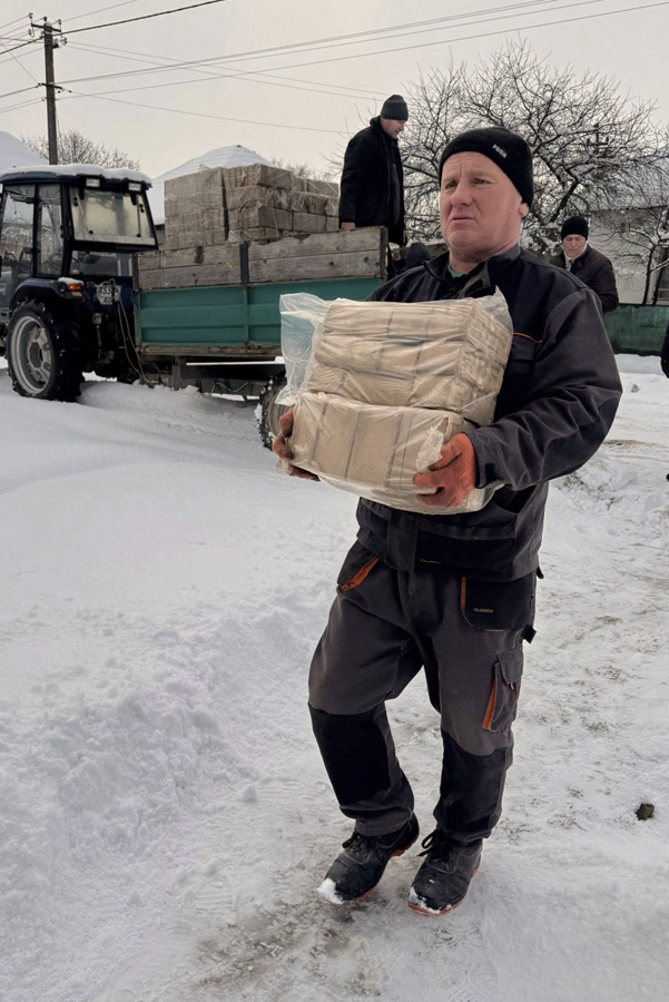 Kirchengemeinden leisten Hilfe in der Kälte und Dunkelheit: Feuerholz und Essen für Familien, Kinder und alte Menschen, die allein zurückgeblieben sind.